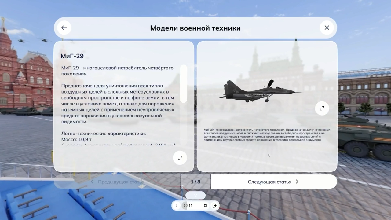 - Интерактивные стенды - с 3D-моделями оружия и техники, которые можно рассмотреть со всех сторон