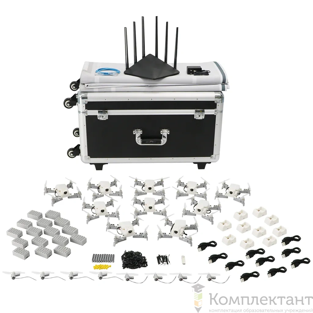 Комплектация Набор дронов -10  шт STEM / Зарядное устройство для литиевых батарей х 10 / Коврик с QR-кодами х 1 / Маршрутизатор х 1 / Литиевая батарея х 16 / Модуль позиционирования х 10 / Фонари х 10 / Соединительный кабель х 10 / Зарядная база х 10 / Кабель микро-USB х 10 / Ключ для пропеллеров х 1 / Инструкция х 1 / Кейс транспортировочный х 1 / Запасные винты (по часовой стрелке / против часовой стрелки по 2 шт.) х 10 / Запасные моторы (по часовой стрелке / против часовой стрелки по 2 штуки) х 8 / Запасные штифты (стандарт: 100 | половина: 10) х 4 / Руководство