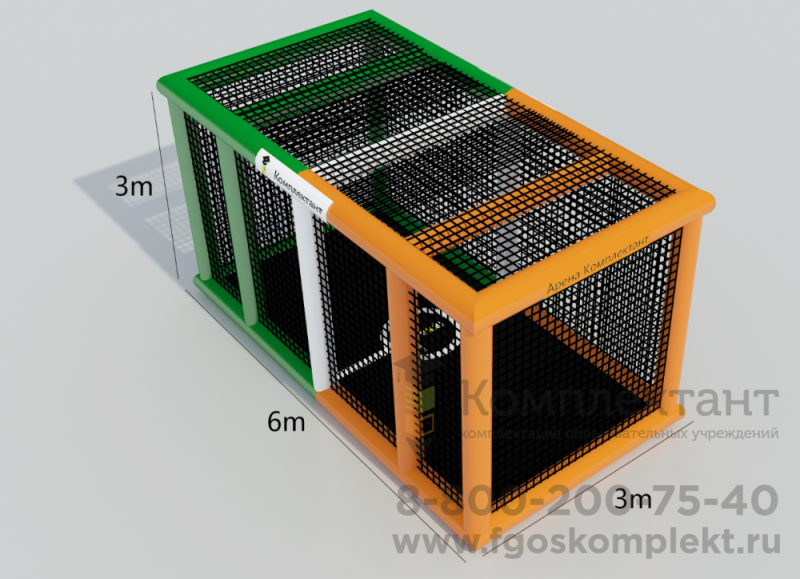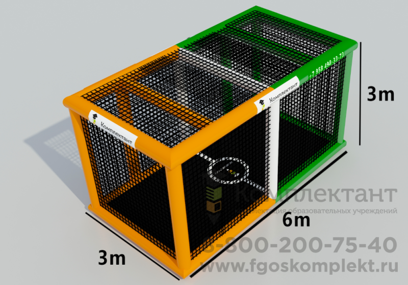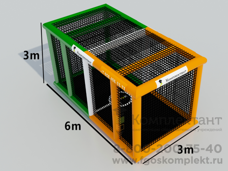 • Сетчатый куб имеет размеры 6м длина × 3м ширина × 3м высота (6×3×3), которые соответствуют требованиям для проведения соревнований по дрон-футболу
