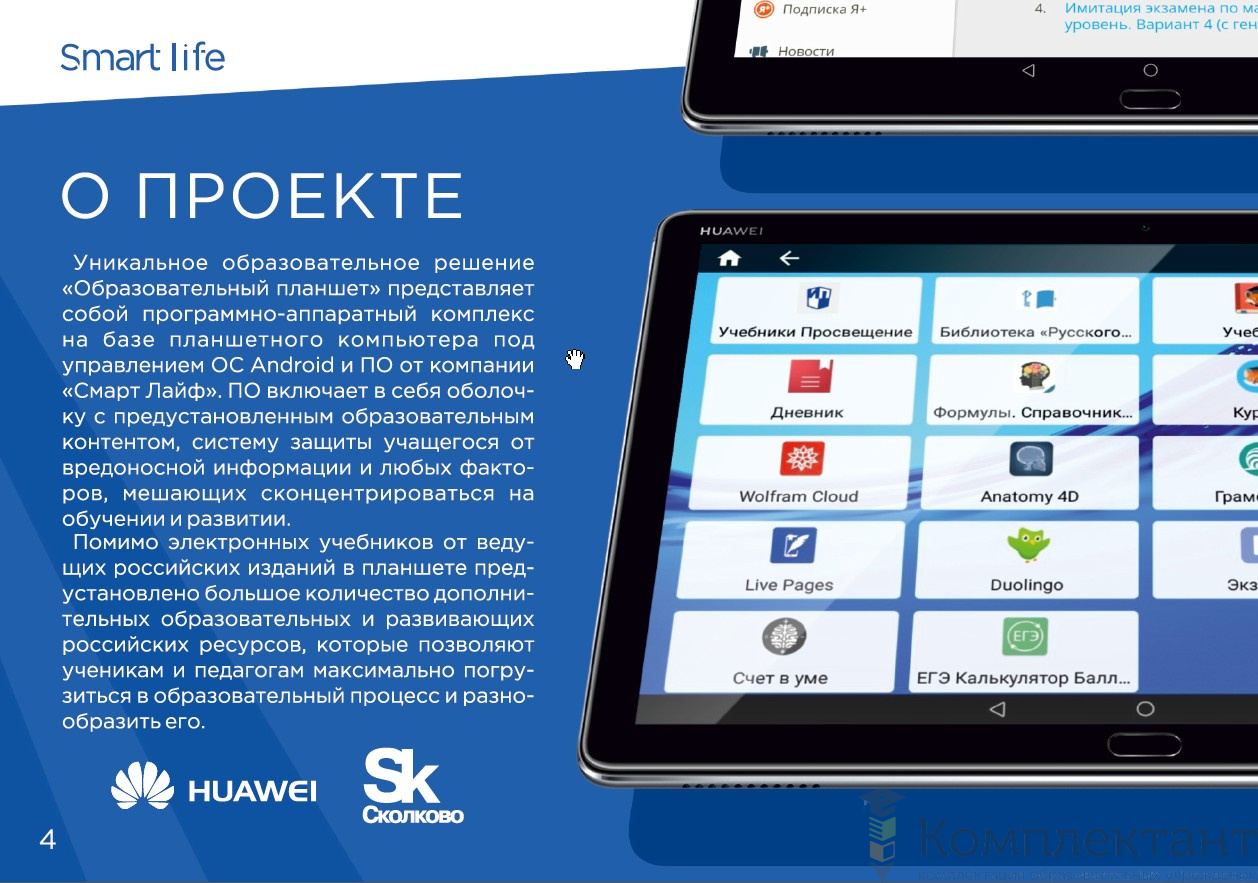 1 учебный планшет (Программное обеспечение на базе Smart Life EduTab; Функционал защиты учащегося от вредоносного и иного непредусмотренного Заказчиком или образовательной программой цифрового контента);
