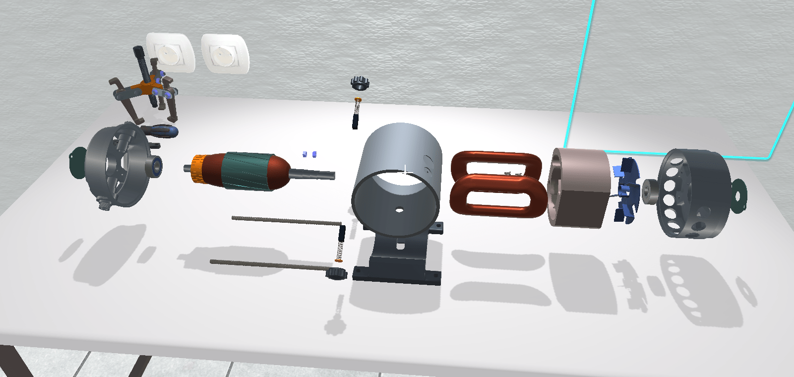 Практикум позволяет в трехмерной среде изучать конструкцию электроаппаратов и разбирать их при помощи виртуальных инструментов. Все составляющие каждой модели имеют подписи с названием и назначением.