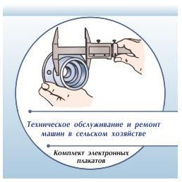 Возможен заказ как комплекта типовых плакатов, так и выборочный, используя макеты наглядных пособий из комплекта электронных плакатов «Техническое обслуживание и ремонт машин в сельском хозяйстве» на CD. Размер плакатов 560х800 мм или другой по выбору.