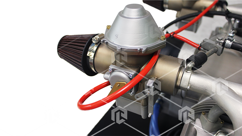 Навесное оборудование, имитирующее элементы двигателя, такие как карбюраторы, маслораспределительная помпа, блок зажигания с бронепроводами и свечами зажигания.