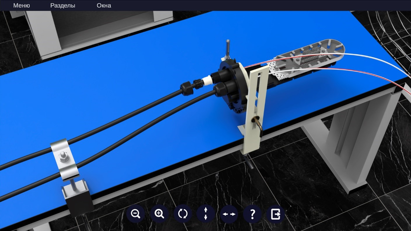 Виртуальный тренажер дает возможность получить практические навыки по вводу и герметизации волоконно-оптического кабеля (ВОК) в оптическую муфту с помощью комплектов вводов механическим способом и с применением термоусаживаемых материалов, а также позволяет изучить технические характеристики комплектов вводов различных типов.