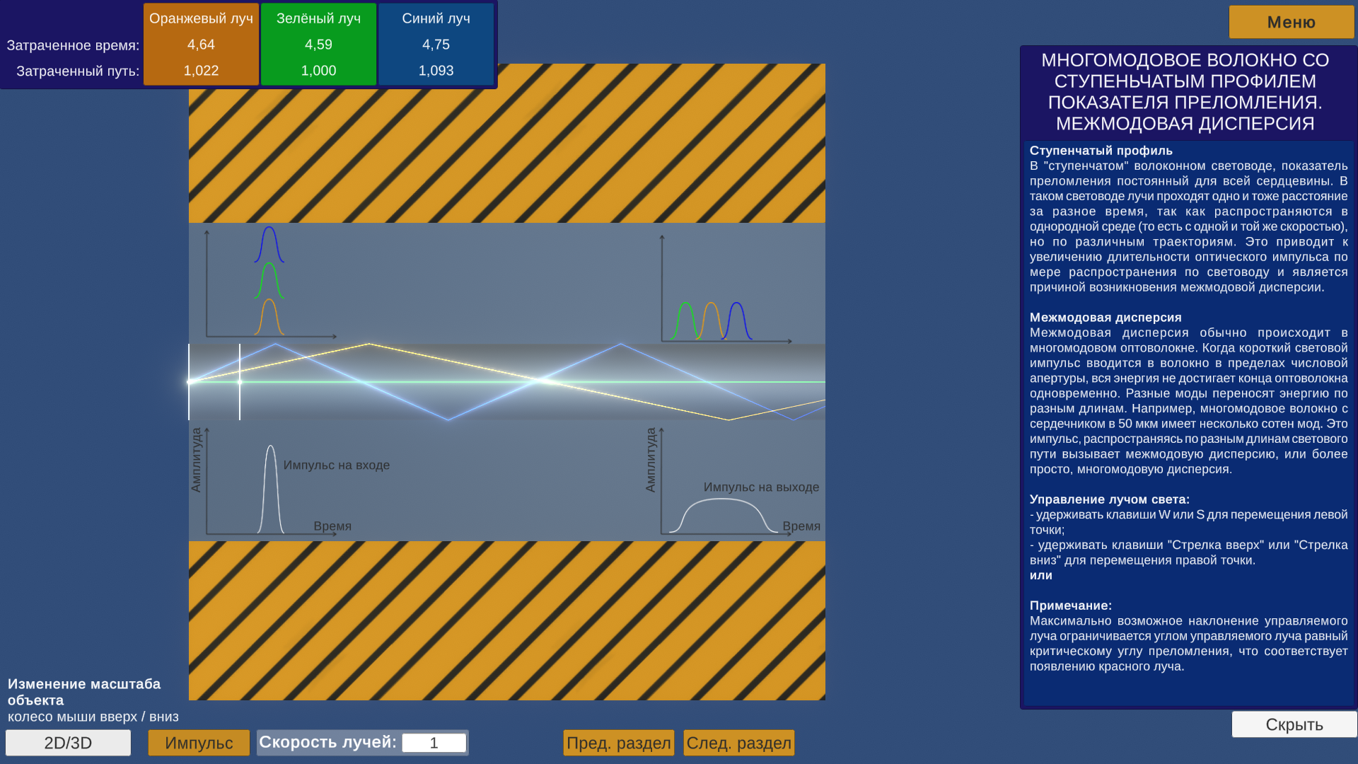 - Теоретический модуль «Волоконно-оптический кабель». Демонстрация и описание принципов работы оптического волокна и физических основ оптических явлений, встречающихся и использующихся в волоконно-оптических кабелях.