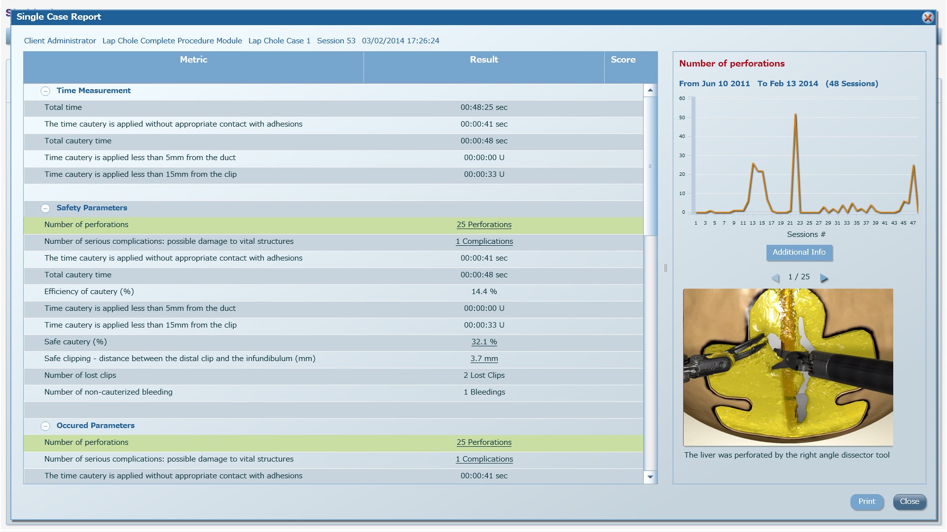 Детализированная оценка по итогам выполнения заданий как для основного хирурга, так и для ассистента.