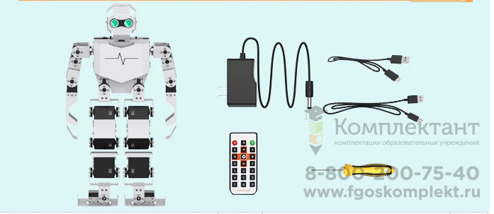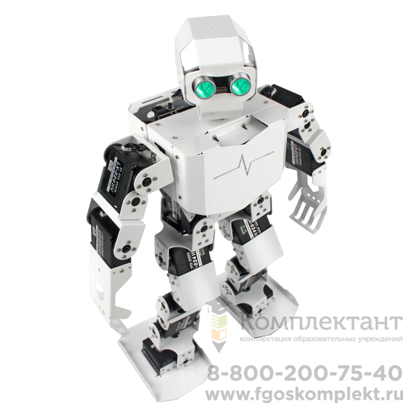 Образовательный набор предназначен для изучения способов работы и управления роботом гуманоидом. Робот состоит из комплекта серво модулей, представляющих собой модели промышленных автоматизированных приводов со встроенной системой управления. Количество и система управления сервоприводами позволяет изучить сложносоставные кинематические схемы.