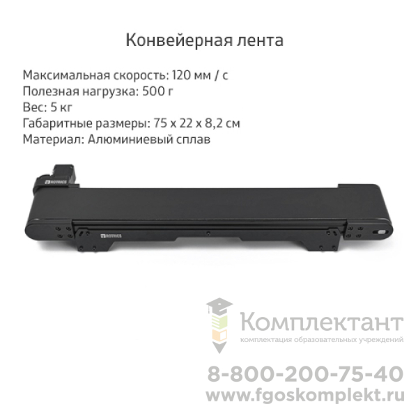 Конвейерная лента для четырёхосевого манипулятора - расширение стандартного набора. Позволяет создать полноценный мини конвейер прямо у вас на столе. Благодаря алюминиевому корпусу твердо стоит на ровной поверхности. Движение ленты двунаправленное, помимо самой ленты в комплекте идет камера и цветные кубики, данный набор делает возможным сортировку по цвету и моделирование промышленных задач.