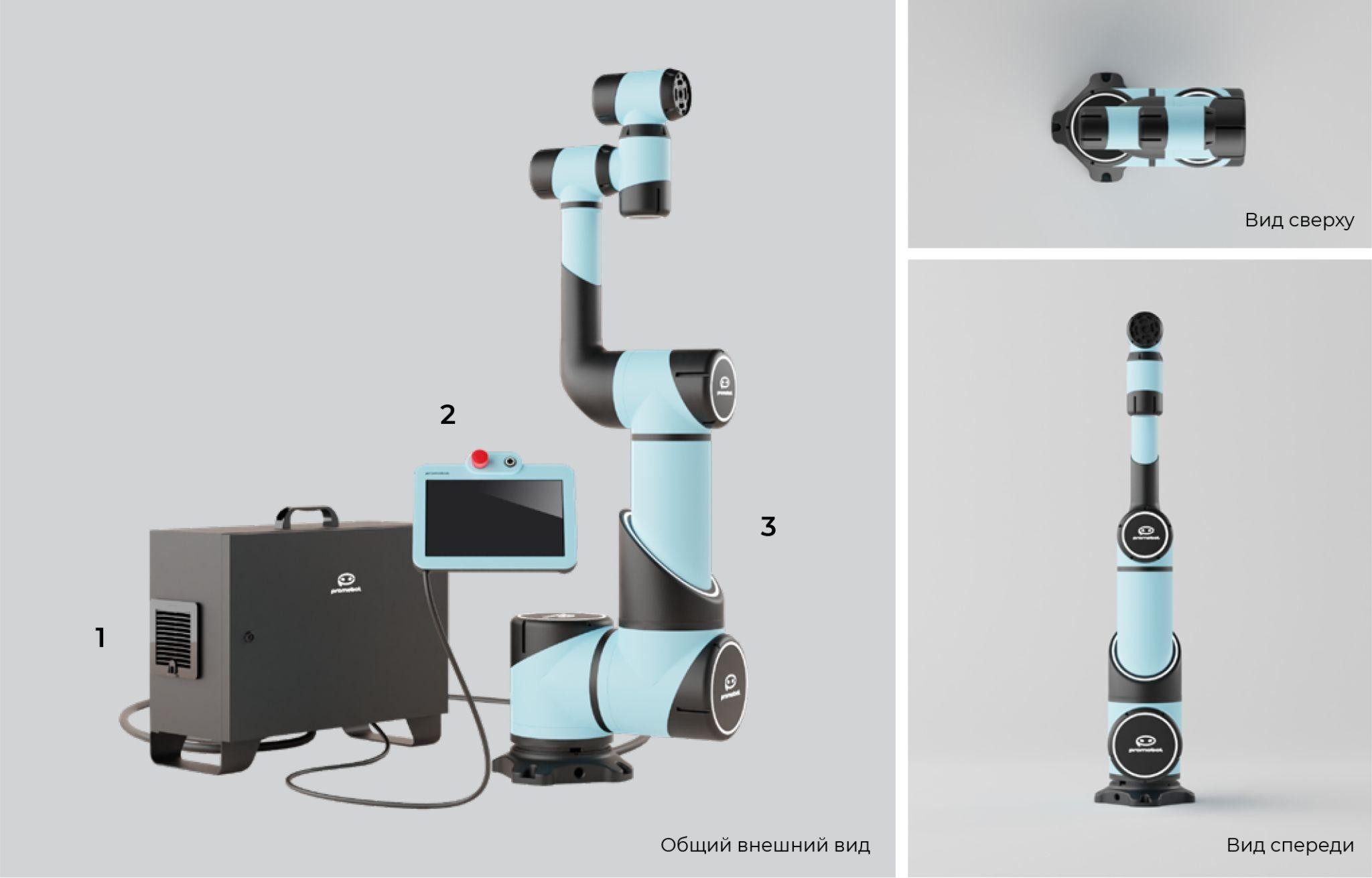 • Манипулятор — шестиосевой коллаборативный манипулятор, для безопасного и эффективного совместного использования человеком в различных промышленных процессах;