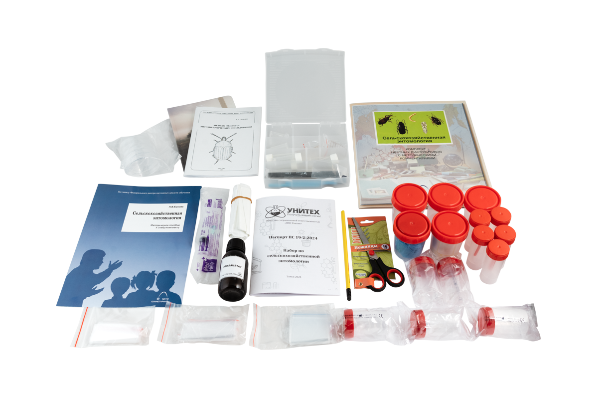 Набор предназначен для проведения практических полевых и лабораторных занятий по энтомологии, а также для практических работ по курсу зоология беспозвоночных в школах, вузах и СПО.