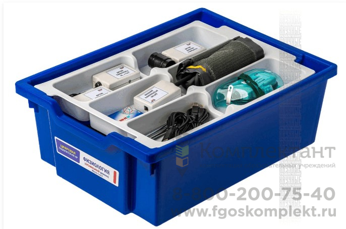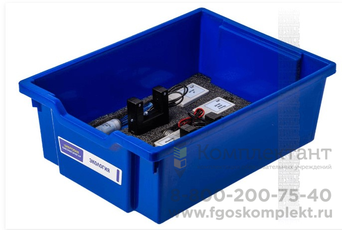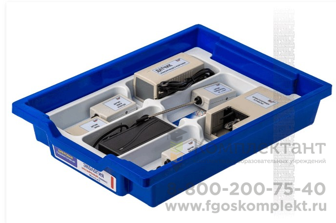 Цифровая лаборатория укомплектована в специальный пластиковый контейнер, который закрывается прозрачной пластиковой крышкой. Комплект оборудования и датчики в контейнере располагается на специальных ложементах.