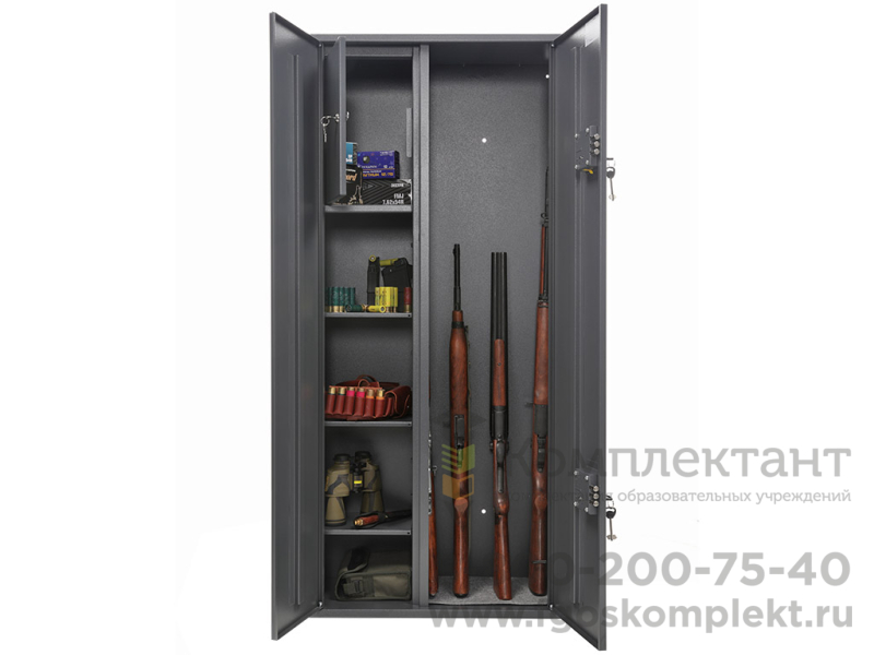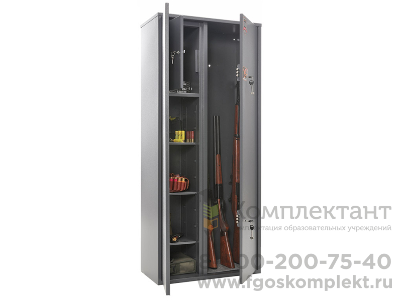 Предназначен для хранения огнестрельного оружия.Сейфы соответствуют требованиям ст.59 Постановления правительства РФ №814 от 21 июля 1998 года «О мерах по регулированию гражданского и служебного оружия и патронов к нему на территории РФ».