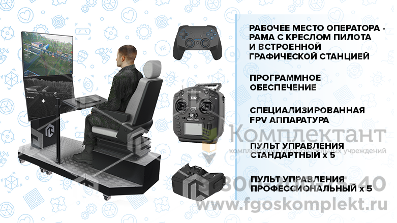 - Рабочее место оператора: рама с креслом пилота и встроенной графической станицей – 1шт.