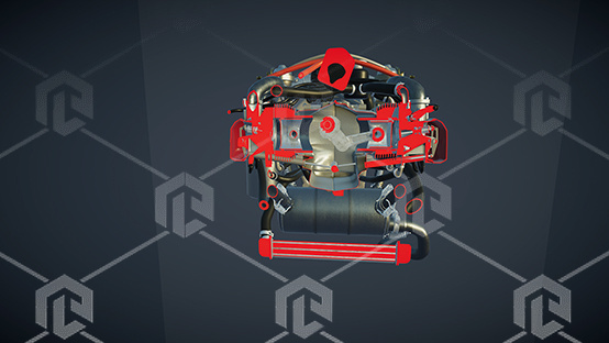 В стенде реализованы трехмерные модели, являющиеся аналогами реального оборудования двигателя Rotax 912 или другого (по выбору заказчика).