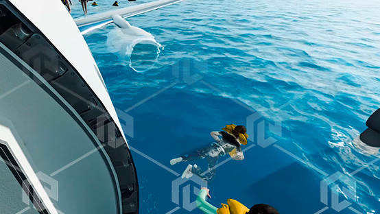 А также в комплексе содержится демонстрация безопасных поз для КЭ и пассажиров, принимаемых при аварийной посадке; подробный перечень инструкций для КЭ для проведения эвакуации пассажиров; инструктажи для пассажиров-помощников, проводимых кабинным экипажем в условиях аварийной ситуации; продемонстрированы пути эвакуации.