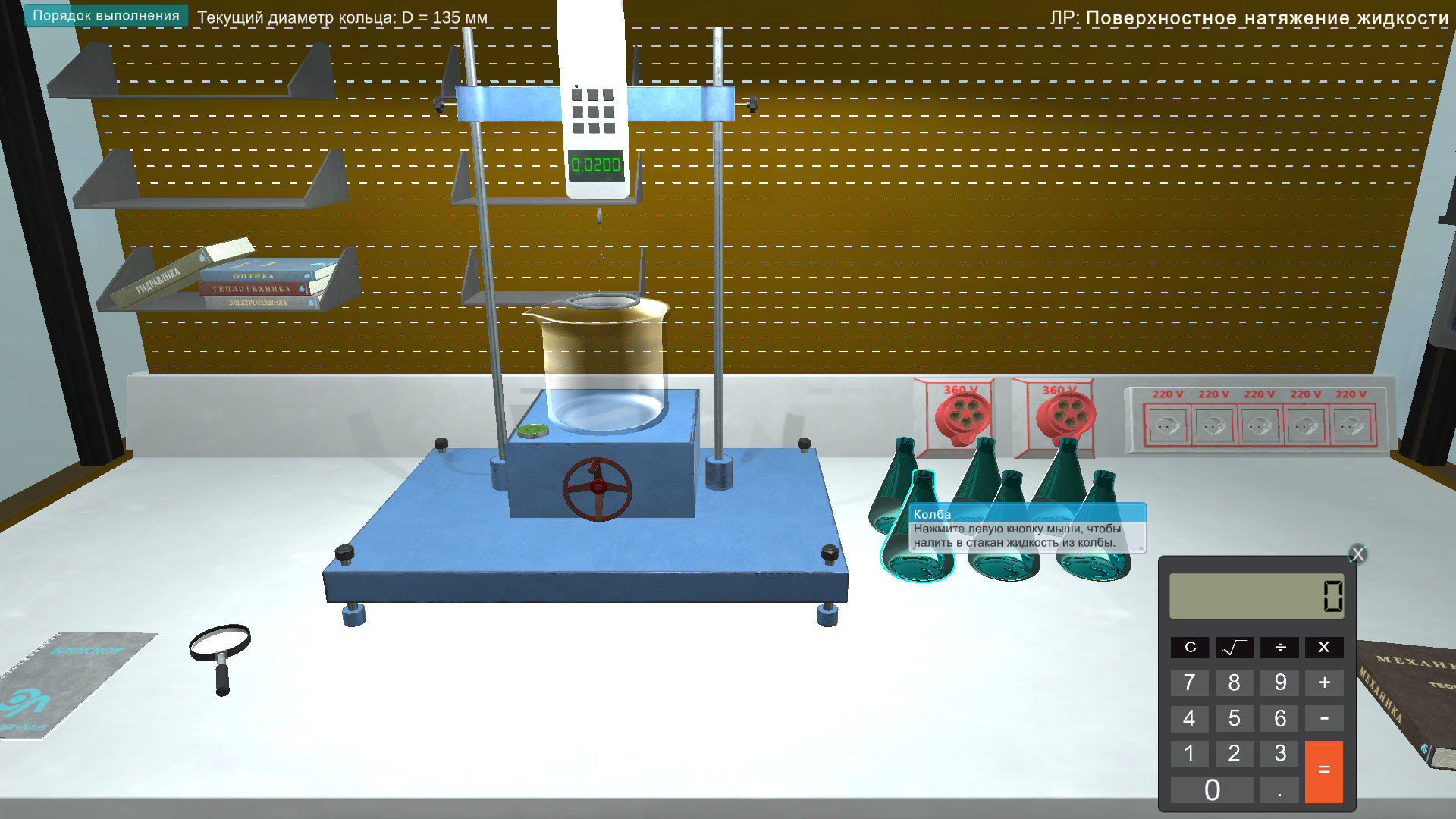 1. исследование поверхностного натяжения жидкости методом отрыва кольца;