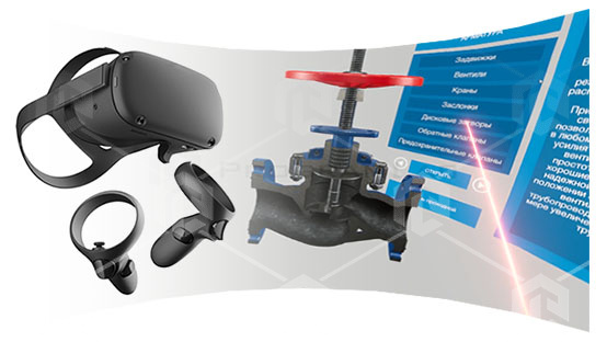 Реализовано интерактивное взаимодействие с элементами трехмерных моделей с помощью шлема и контроллеров виртуальной реальности Oculus Quest, с возможностью перемещения в открытых виртуальных пространствах, масштабированием трехмерных моделей нефтегазового оборудования.