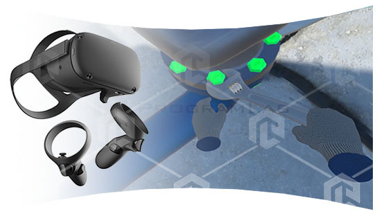 Реализовано интерактивное взаимодействие с элементами трехмерных моделей с помощью шлема и контроллеров виртуальной реальности Oculus Quest, с возможностью перемещения в открытых виртуальных пространствах, масштабированием трехмерных моделей нефтегазового оборудования.