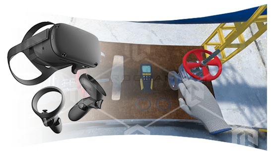 Реализовано интерактивное взаимодействие с элементами трехмерных моделей с помощью шлема и контроллеров виртуальной реальности Oculus Quest, с возможностью перемещения в открытых виртуальных пространствах, масштабированием трехмерных моделей нефтегазового оборудования.