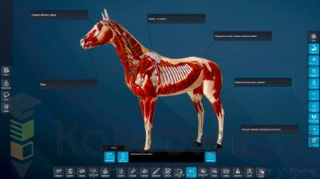 Виртуальный учебный комплекс предназначен для подробного изучения анатомии лошади с помощью трёхмерной графики и анимации, а также комплектов виртуальной реальности.