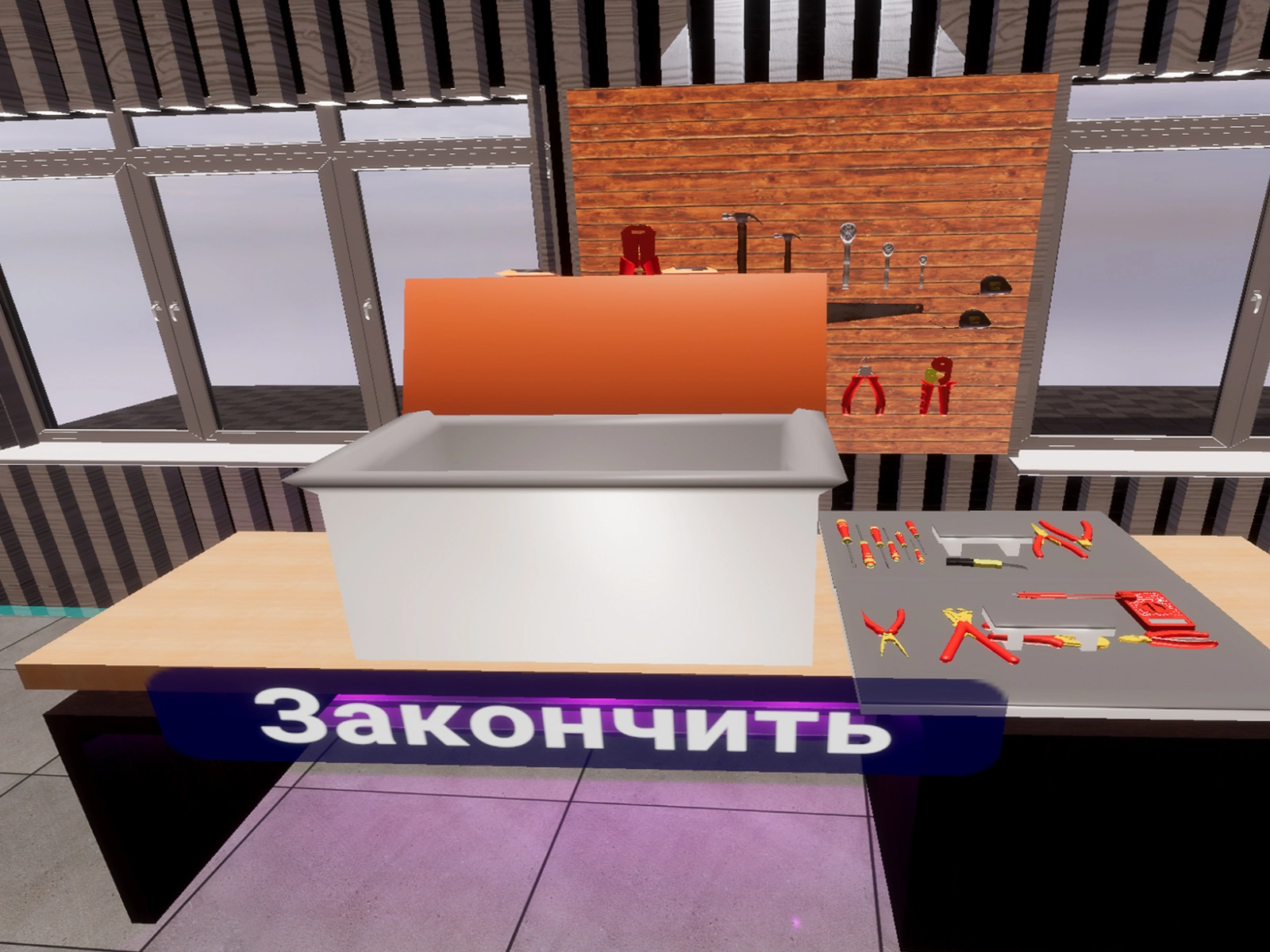 "Электромонтер" позволяет познакомиться с реальными инструментами, необходимыми для работы, и применить их на практических занятиях.