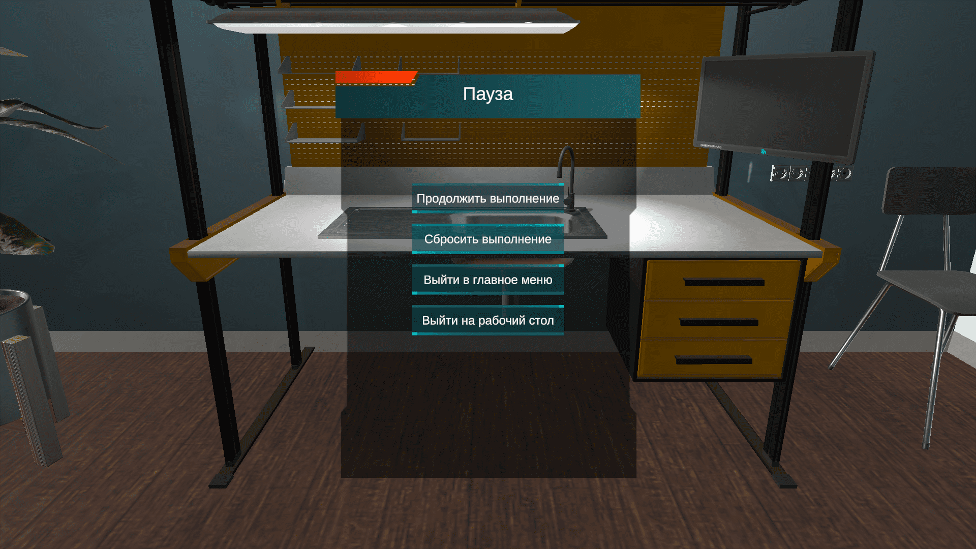 В программное обеспечение входит мультимедийное представление изучаемого процесса, условно разделенное на режимы обучения.