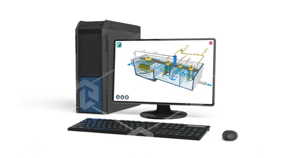 Специализированное программное обеспечение, в котором реализованы трехмерные модели, являющиеся аналогами камеры хлопьеобразования. Предназначено для изучения особенностей работы камеры хлопьеобразования.