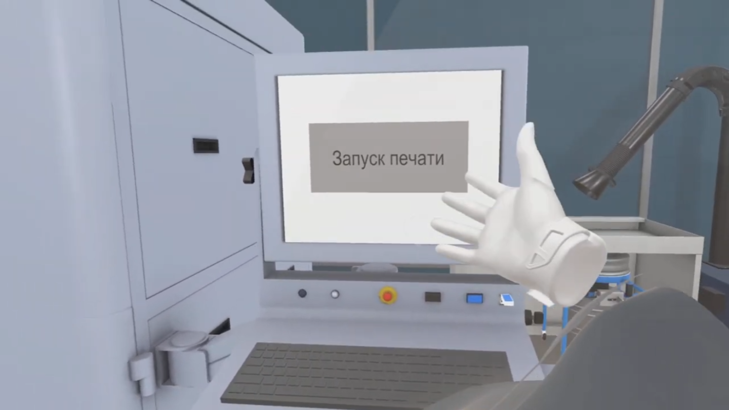 Тренажер воссоздает ситуацию работы с малым FDM и большим промышленным SLS 3D-принтерами. VR-тренажер позволяет пользователю проходить симуляцию с целью обучения ключевым навыкам, которыми должен обладать специалист по аддитивным технологиям.